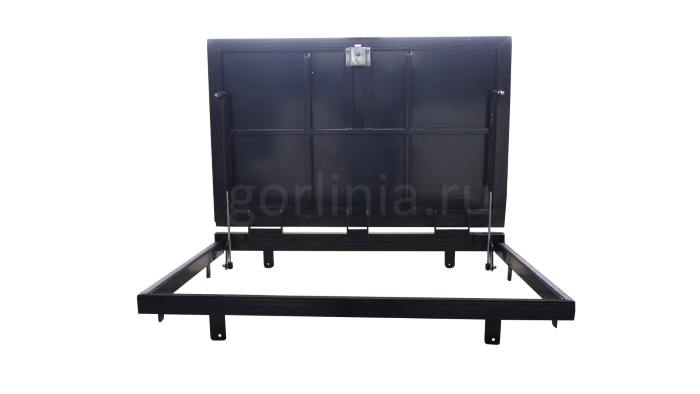 Рама без наличников выставляется в существующем отверстии 70*100 см с допусками, крепится в перекрытии через вертикальные пластины даже когда Ваш ремонт закончен и пол выложен керамогранитом или настелена ламинированная доска.